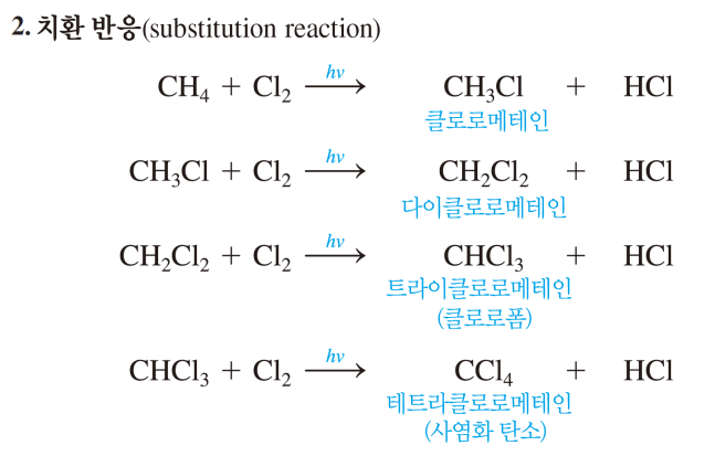 | 포화 탄화수소 -탄소 원자들이 전부 단일결합 |