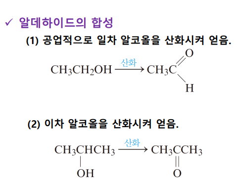 -공업: 일차알코올을 산화, 이차알코올 산화