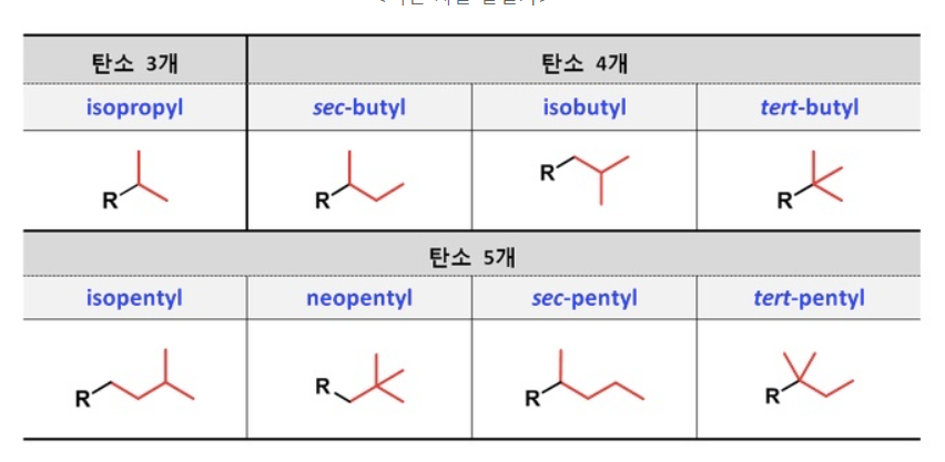 iso는 가장 가까운 탄소에 붙은 탄소가 1개이고, 끝이 2갈래 / neo는 1개이고, 끝이 3갈래 / sec는 가장 가까운 탄소에 붙은 탄소가 2개
