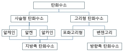 탄화수소의 종류 : 알케인, 알켄, 알카인, 방향족 탄화수소