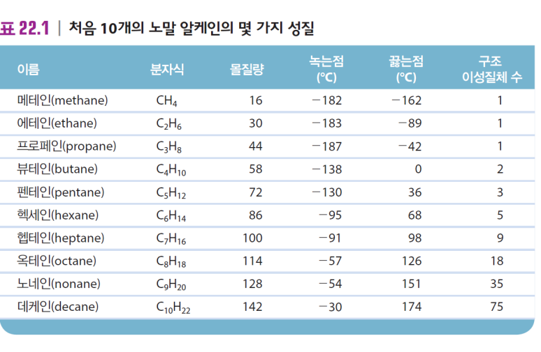 CnH2n+2 곧은 사슬일 때 CH3-(CH2)n-CH3 ***고리형알케인은 CnH2n